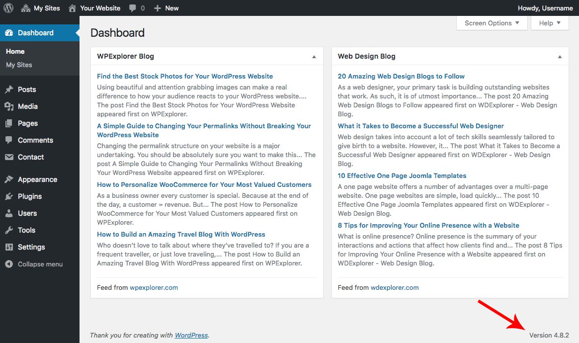 Not sure which version of WordPress your site is running? Simply log in to your WordPress site and you'll see the current version number in the bottom right corner of your dashboard.